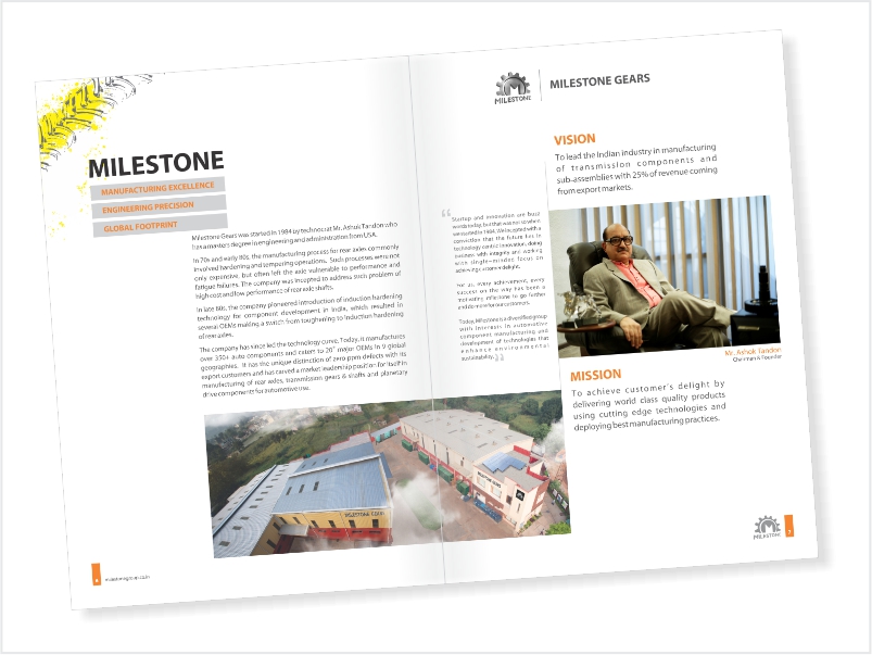 We crafted a brand identity for Milestone that placed the gear and shaft manufacturer in the league of Indian leaders. Right from their website and brochures to the corporate TVC, creation of content and audio-visual presentations was an integral part of the journey with their brand.